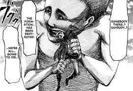 The story follows Eren Yeager, and two of his friends as they fight Titans in a semi post-apocalyptic world. Titans are giant humanoid monsters that eat people. And smile. And that's all we know about them.