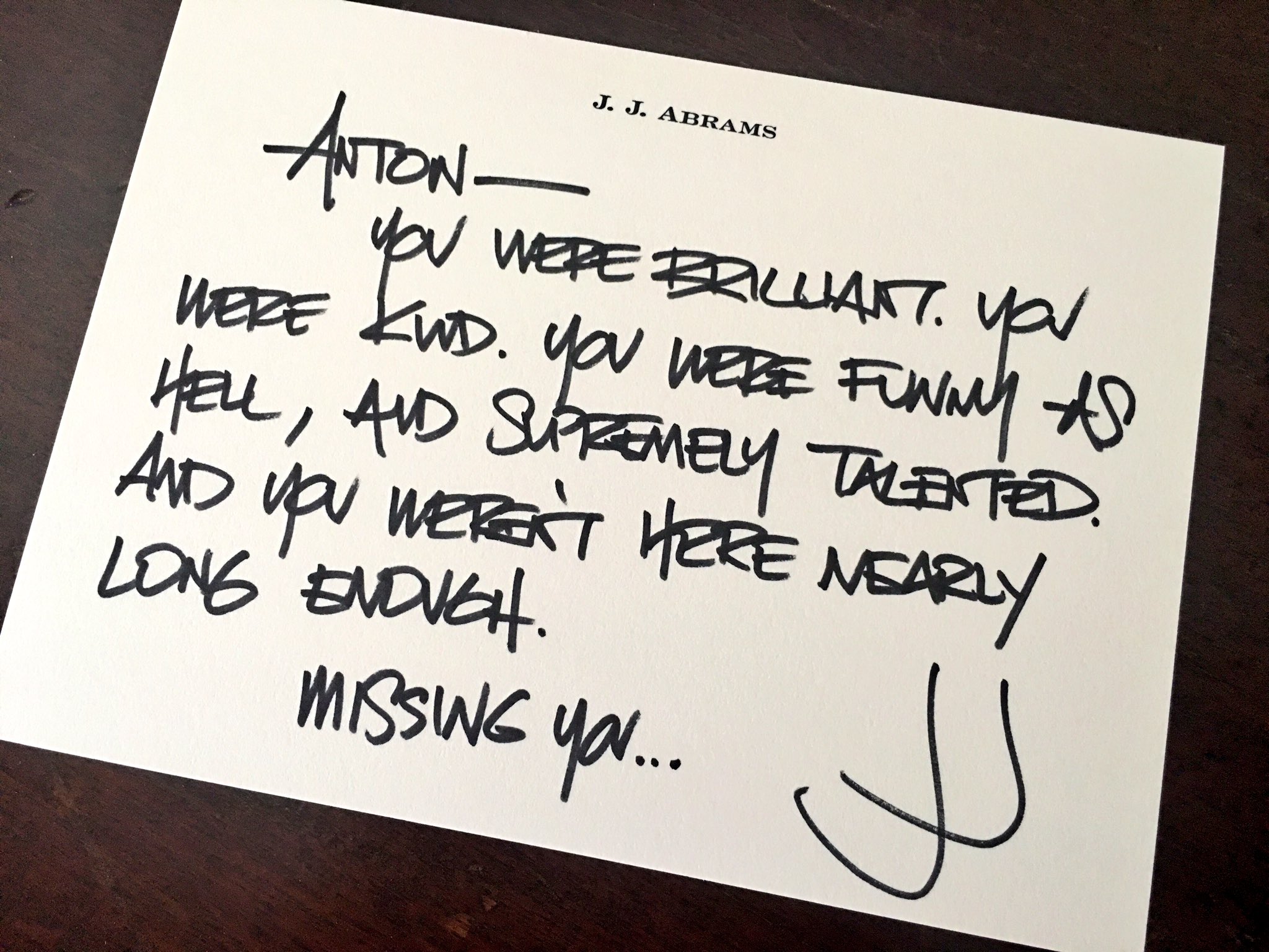 As you've probably hear, Anton Yelchin, the new Chekov, died in a freak accident.
